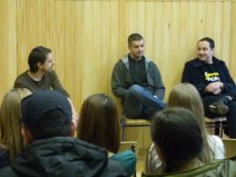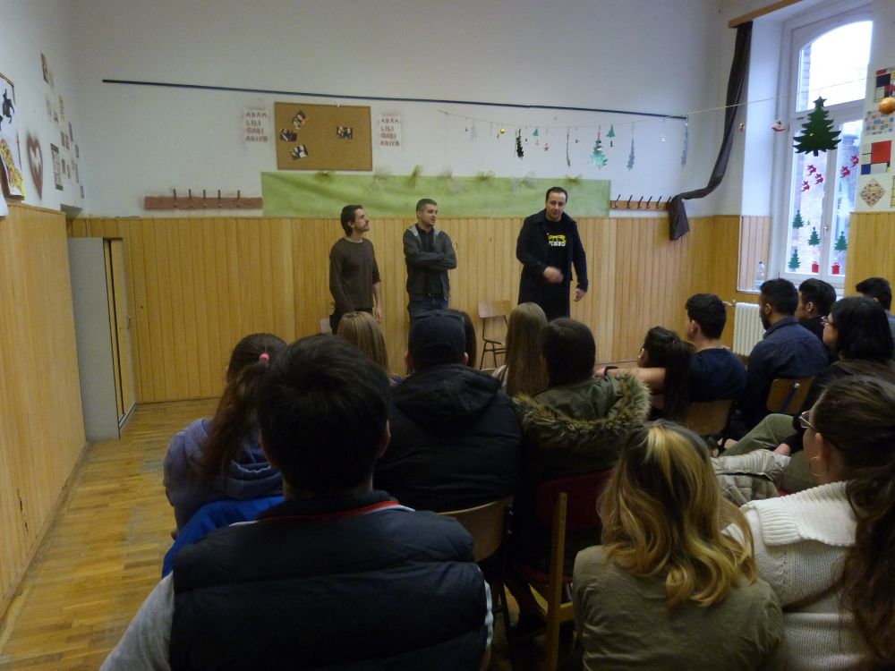 Pénteken a VIII. kerületi Lakotos Menyhért Általános Iskola és Gimnáziumban járt Ady/Petőfi című előadásunk. A diákok értő, figyelő közönség voltak, a beszélgetésen Szálinger Balázs költő fel is figyelt néhány srácra, akikkel dolgozna is a jövőben. Az iskokálban legközelebb a Vakság című előadásunkat játsszuk.